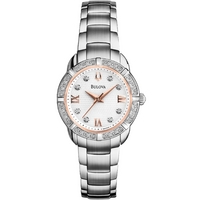 Bulova Ladies Diamond Watch 96R176 Product Description : - Quartz analogue movement - 2 Tone steel Diamond Set case - Stainless Steel Bracelet - Silver Tone Diamond Set Dial - Rose Gold Tone Hands And Markers Also comes with : - 3 Year Manufacturer's Guarantee - A Presentation Box